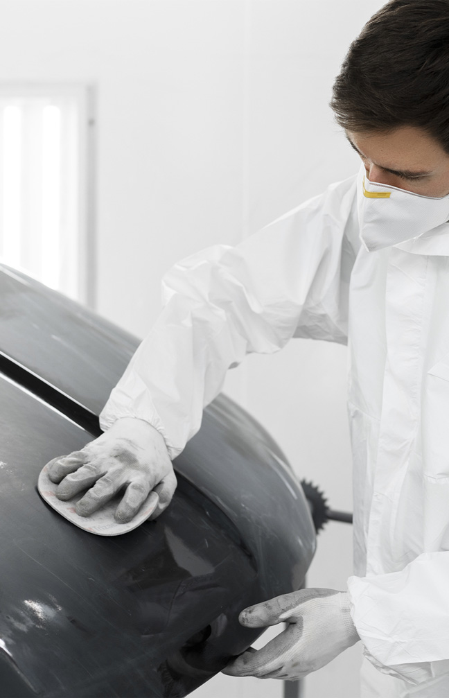 Nossa oficina conta com uma cabine de pintura, garantindo acabamento perfeito, secagem rápida e cores uniformes, e proteção contra poeira e impurezas.